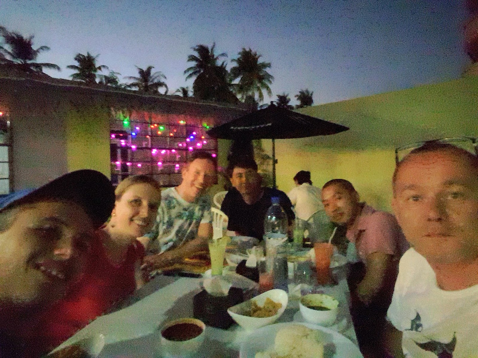 Et 10 minutes après, Francisco et Julia, qui viennent de rejoindre Maafushi, débarquent aussi dans le restaurant par hasard ! On mange tous ensemble.