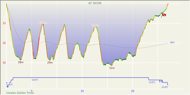 On termine la plongée comme si j’étais responsable de plongée. Je galère à tirer mon parachute, une fois de plus. Va falloir que je pense à en prendre un plus pratique.