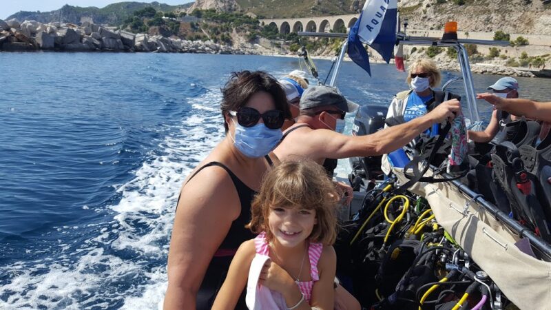 Pendant ce temps nos deux baptisés auront fait leur première incursion dans les fonds, détendeur en bouche, dans des conditions idéales : mer d’huile, soleil radieux. Leur sourire en dit long sur le plaisir pris sous l’eau.