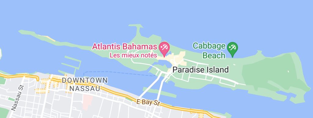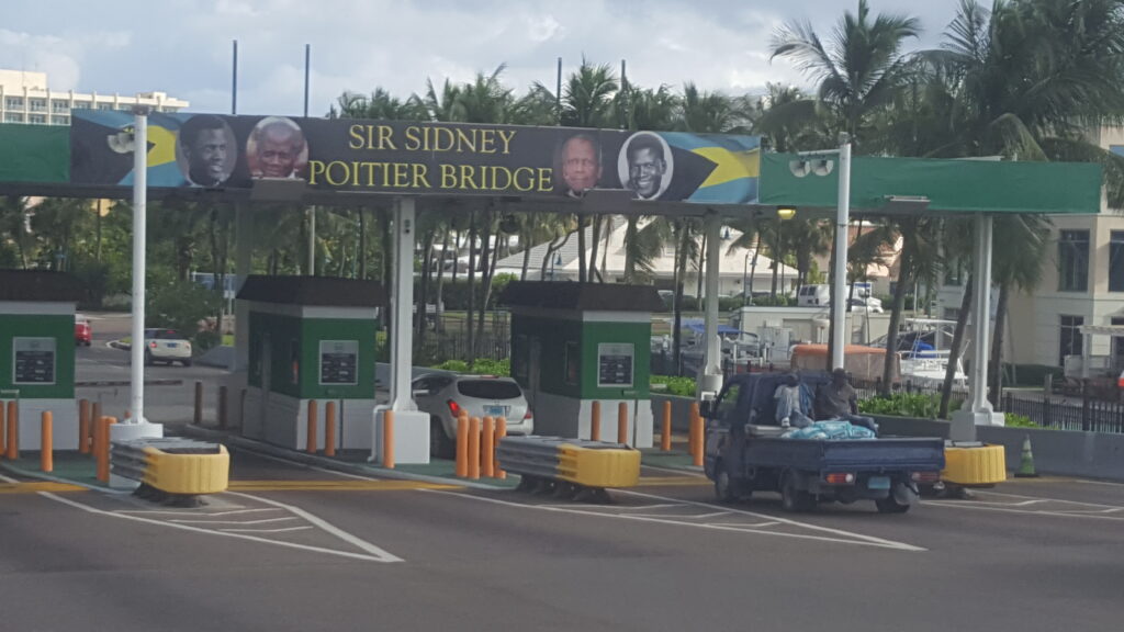 Une fois passé le pont Sidney Poitier (qui était bahamien, vous le saviez ?), les véhicules paient un péage et on arrive dans un tout autre monde : Paradise island.
