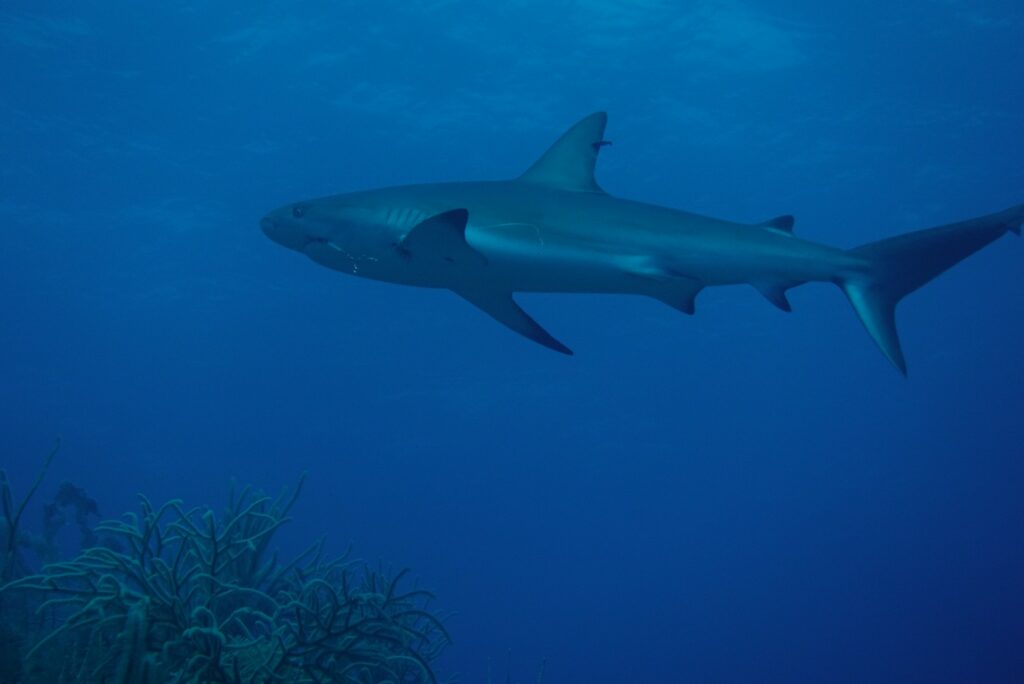 On termine la plongée sous le catamaran, un requin vient faire un tour autour de nous, encore une fois, mais plus proche, à environ 10m. Il a un crochet dans la gueule et quelques centimètres de ligne. Gourmand, il a failli se faire pêcher.