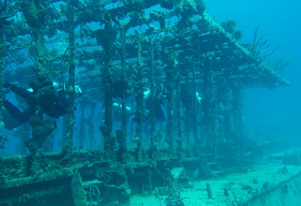 Des éponges sur toute la structure avec toutes les couleurs possibles. Peu de faune. Pas de requins. Pas de mérou. Que du tout petit, et un ou deux poissons perroquets. Sous la coque, on déniche une murène verte. Peu commune !