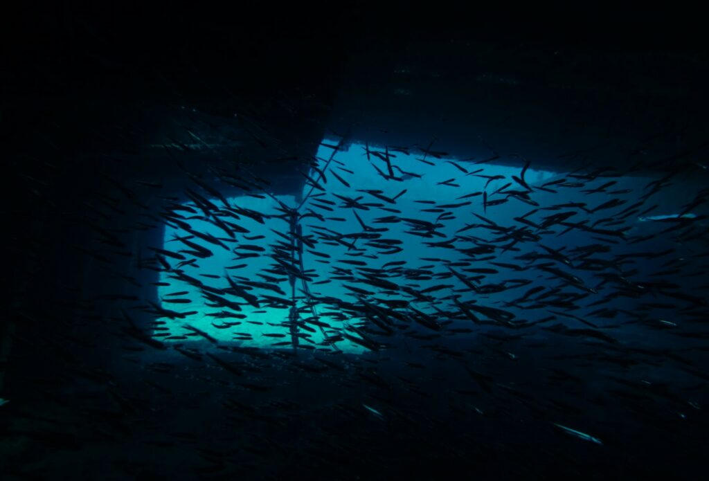 Mais le résultat est qu’on arrive par la poupe et qu’on a une vue parfaite sur la structure arrière, qui forme une cage. Ça me rappelle une autre épave de Méditerranée, mais je ne sais plus laquelle.