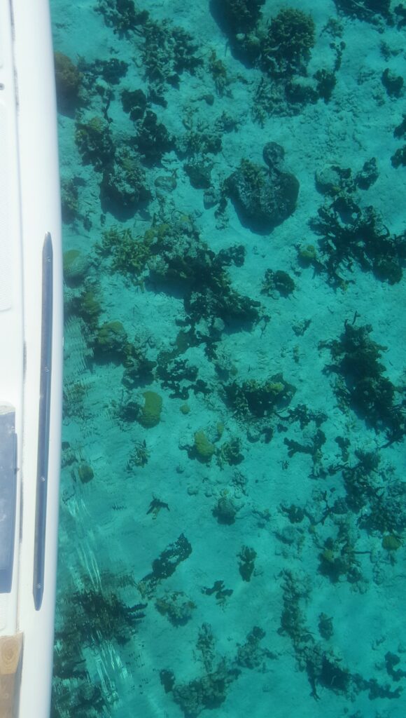 Arrivés à Pipe cay, on avance doucement vers un endroit pour mettre l’ancre.