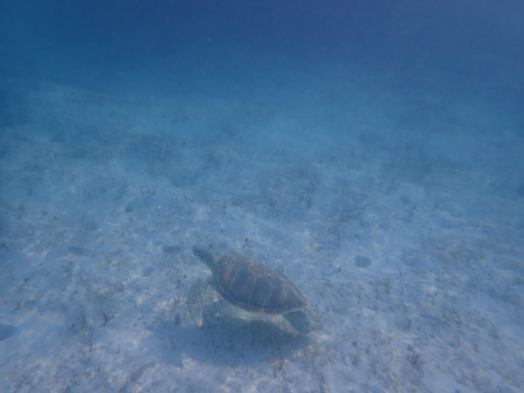 En route, juste avant de sortir du parc on visite une mangrove sur Shroud cay. On y verra 3 petites tortues ! Farouches, je ne pourrai pas les approcher.