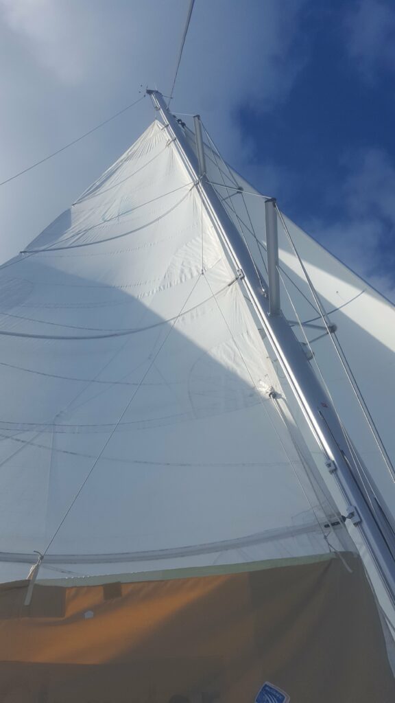 Le vent s’est levé, il y a 20 noeuds. On part à la voile.