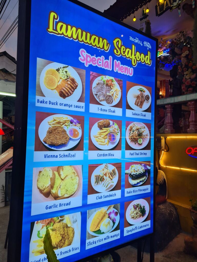 En fait, Khao lak c’est un peu (beaucoup) une station touristique. Un resto, un salon de massage (7 euros le massage d’une heure !), un centre de plongée, un tailleur, une baraque à touristes, et tu recommences tout au long de la route.