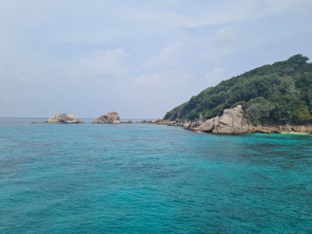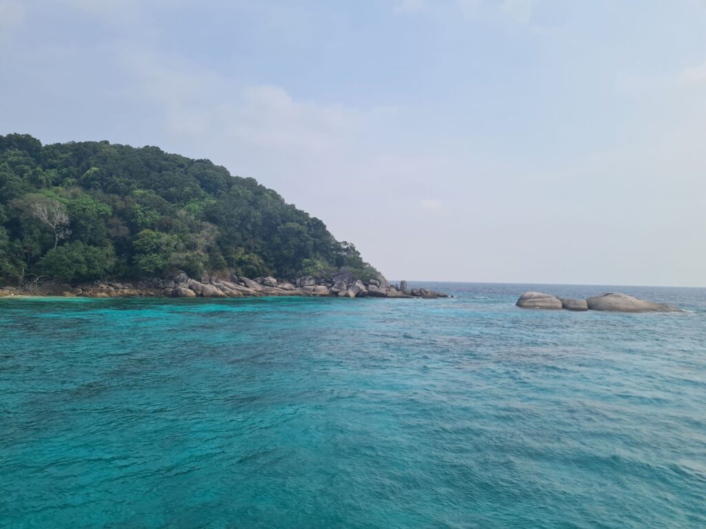 Mais l’Univers en a décidé autrement. Il y a du courant, assez important, dès cinq ou six de fond. On est gentiment emportés le long de l’île. Sur du sable. Bof, me dis-je.