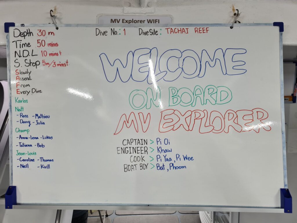 Par contre Julia ne sera pas au Nitrox, Natt non plus, donc il nous demande de mettre nos ordinateurs en mode air. Drôle de manière de faire, en France on ne fait jamais ça ! Chacun part avec le gaz qu’il veut et gère sa bouteille.