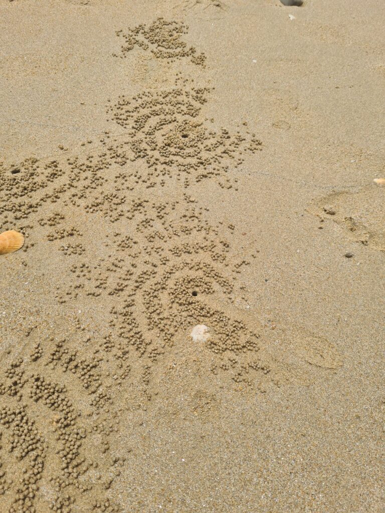 Sur les plages, de minuscules crabes font des trous et sortent des boulettes de sable. Ça fait de super décors !