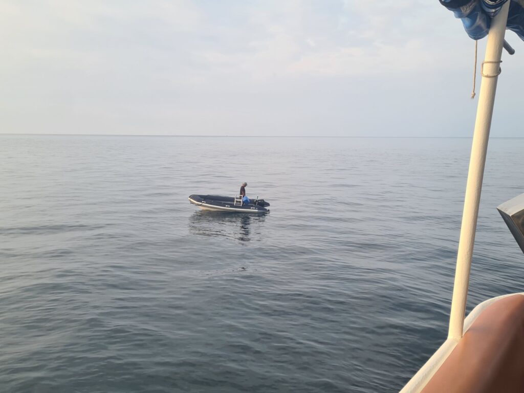 Lorsque l’annexe a besoin de faire le plein elle s’éloigne. A cause des bouteilles d’oxygène pur (pour le Nitrox) situées sur le pont et de la cuisine pas loin (brûleur au gaz). Bonjour le cocktail !