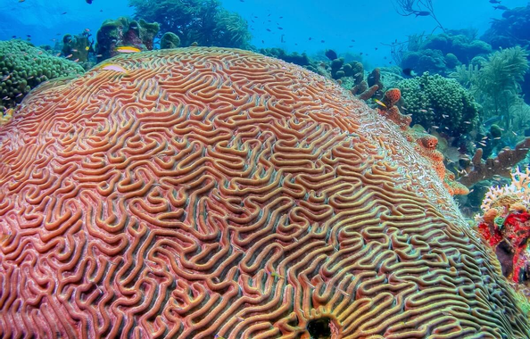 Julia trouve un poisson scorpion barbu et un corail cerveau de belle taille.