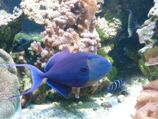 Sur un bout de caillou, un peu profond, je vois une jolie baliste bleue.