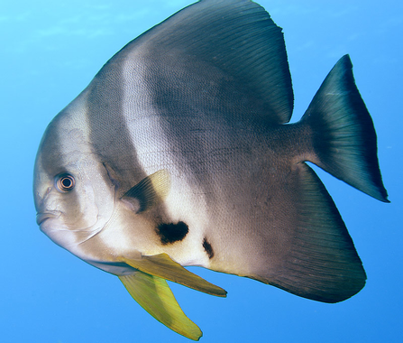 Je suis le dernier de la troupe, je traîne au fond. Je vois un platax, pas farouche. Je me mets debout, en apnée. Il va et vient, il approche à moins d’un mètre. On se regarde.