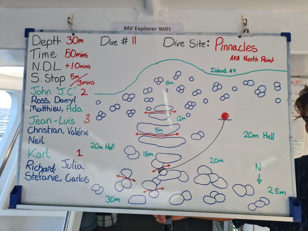 Ross et Darryl la jouent PADI : on se jette, on remonte surface et seulement ensuite on descend. Je trouve tout de même la formation française plus complète sur certains points. On voit de multiples situations et on n’est pas formés à une seule technique.