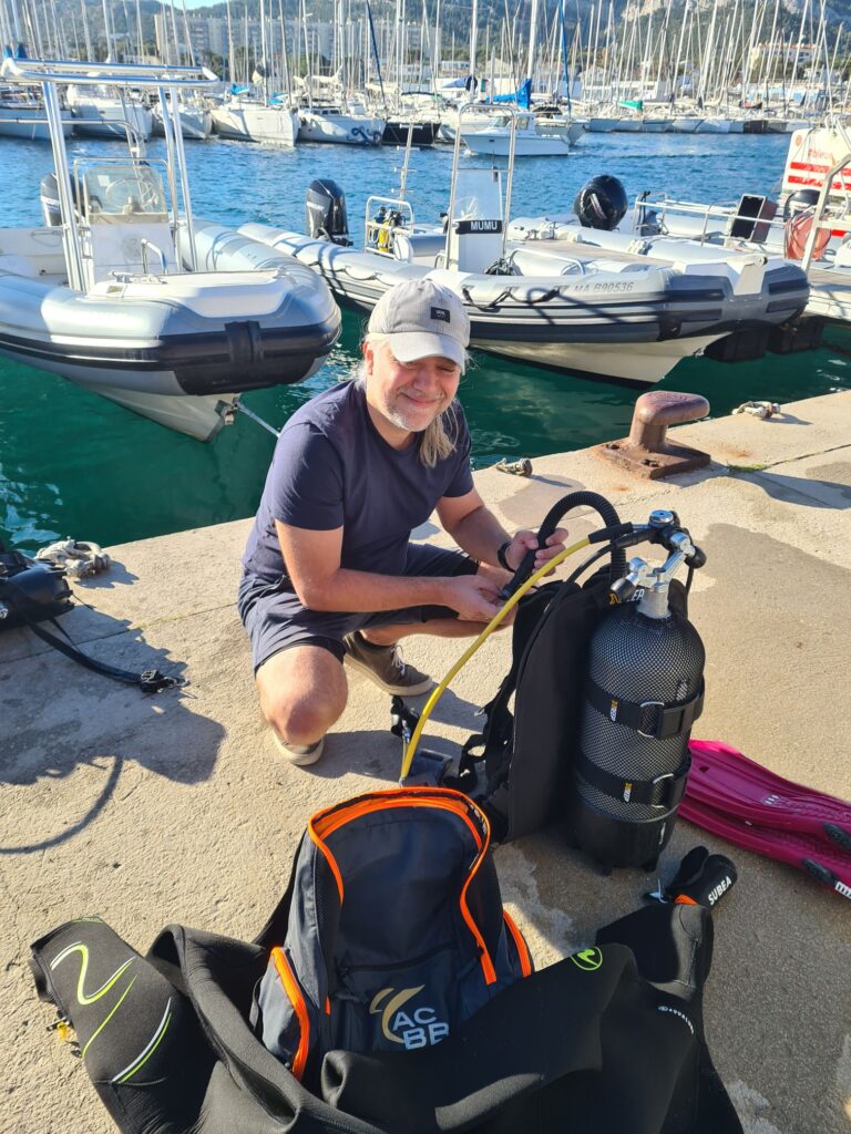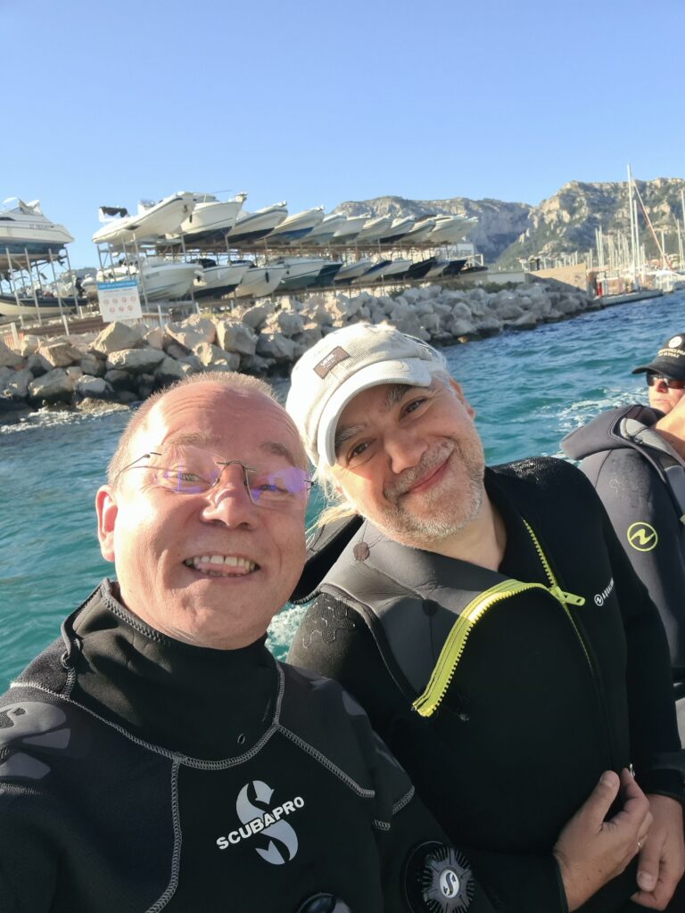 Nous voilà partis, mon cousin et moi, pour une plongée ensemble.
