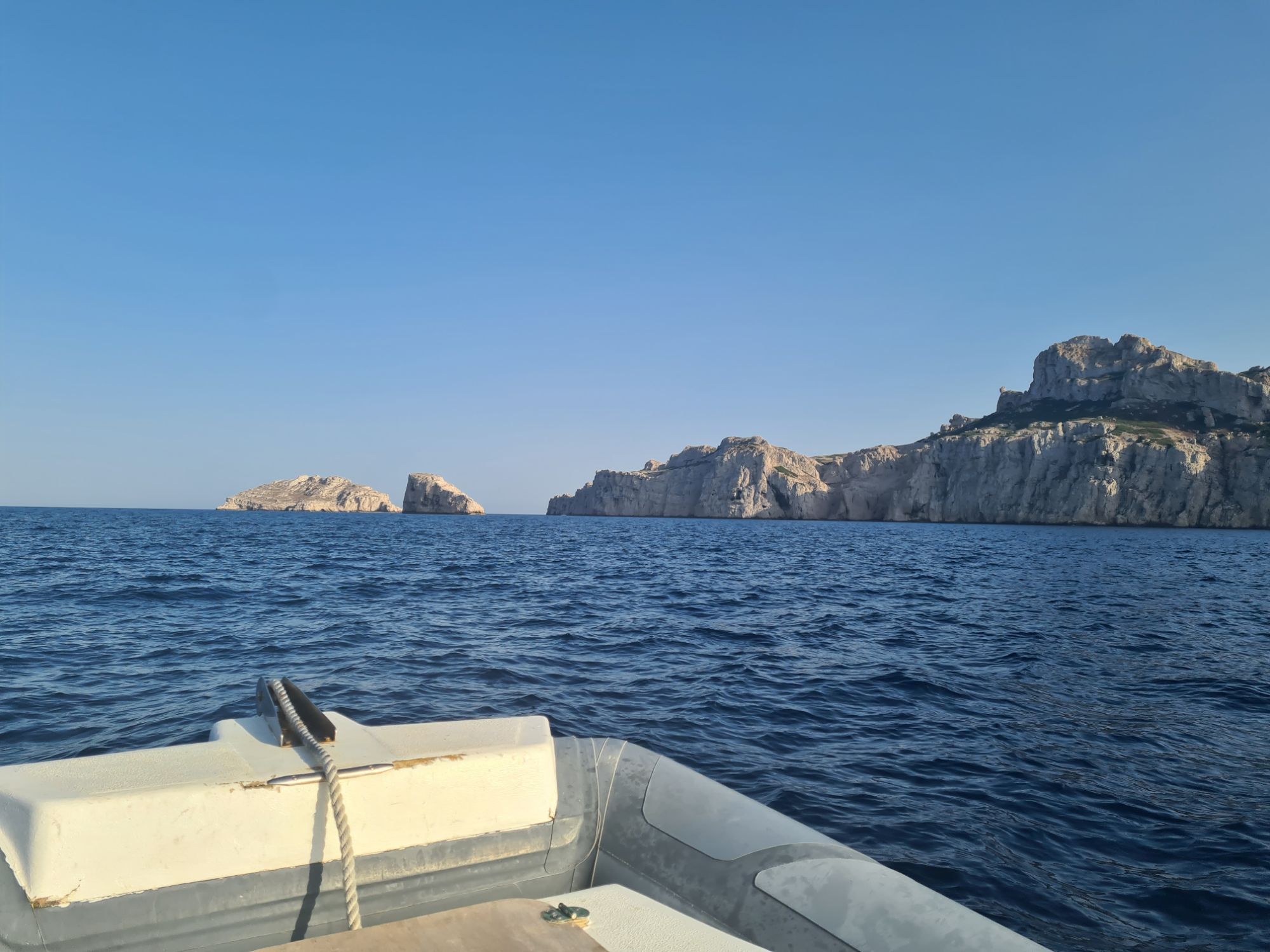 On embarque et on file vers la pierre de Cassis, un spot profond au bout des îles de Riou.