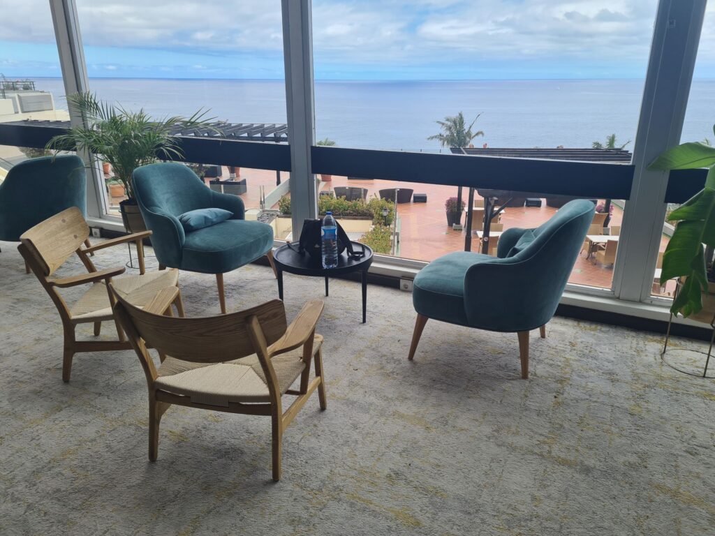 Après la balade, je me cale dans le hall du Carlton pour écrire mon blog.