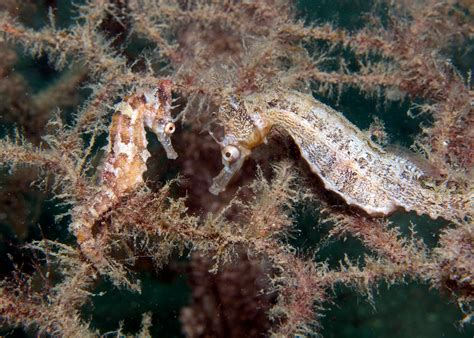 Jorge est très doué pour trouver de la vie. Il va successivement me montrer : une petite murène (calée dans son trou, elle ne se défile pas quand on arrive), des hippocampes, un barracuda dans le lointain.