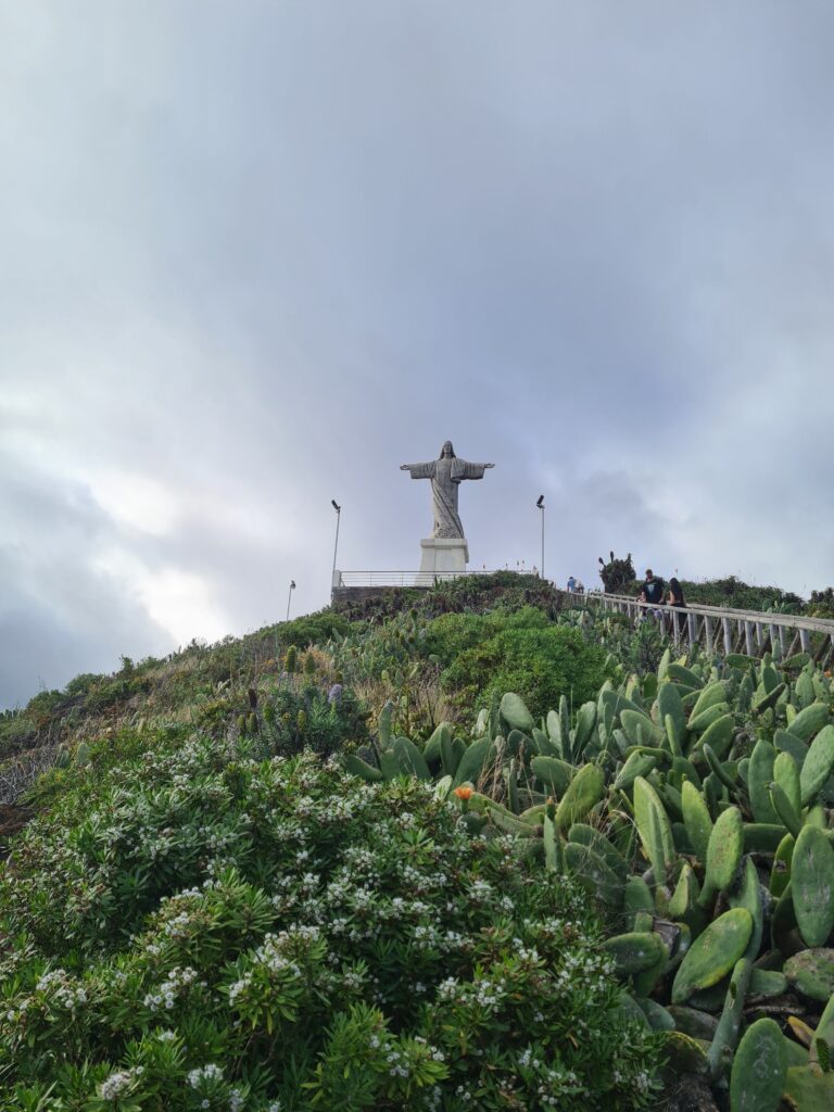 Il y a un Christ sur un promontoire. On pourrait se croire au Brésil.