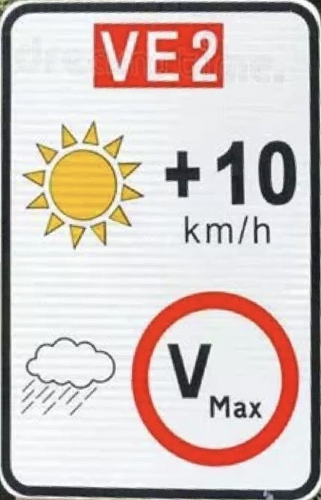Code de la route : j’ai découvert un nouveau panneau. S’il pleut, tu vas au max. S’il fait beau, tu peux aller encore plus vite.