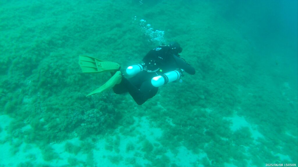 Aujourd’hui j’ai enfin pris la mesure de ma combinaison étanche. Je m’y sens à l’aise, je commence à avoir des automatismes et je crois avoir identifié la “fuite”. Elle vient de la purge du bras. Pour les débutants il est dit de la laisser ouverte tout le temps pour faciliter la gestion, au début. Mais lorsque les pressions ne sont pas équilibrées, l’eau rentre un peu, si elle est ouverte.