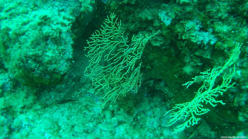 Les gorgones noires, bleues et jaunes ressortent un peu correctement mais elles seraient bien plus belles avec un peu de lumière.