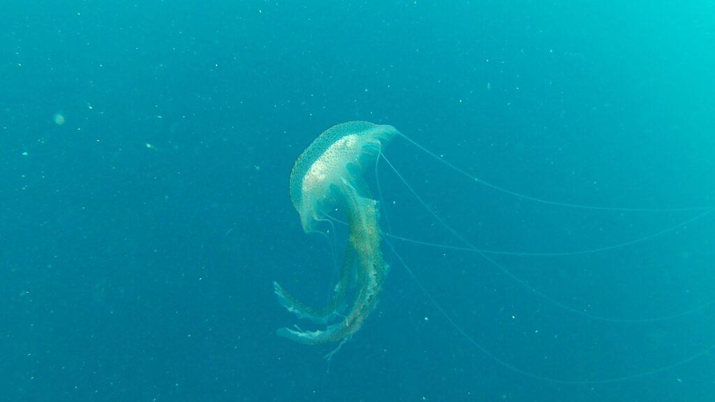 Au palier j’ai le temps de prendre une photo d’une des nombreuses méduses qui sont présentes.
